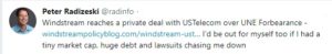 Many of my clients are CLECs. Currently I am interim executive director of an association of ISPs and CLECs. CLECs will get clobbered by this UNE forbearance. The fact that Windstream would make a side deal after opposing the petition, it is disheartening. Hence my tweet.